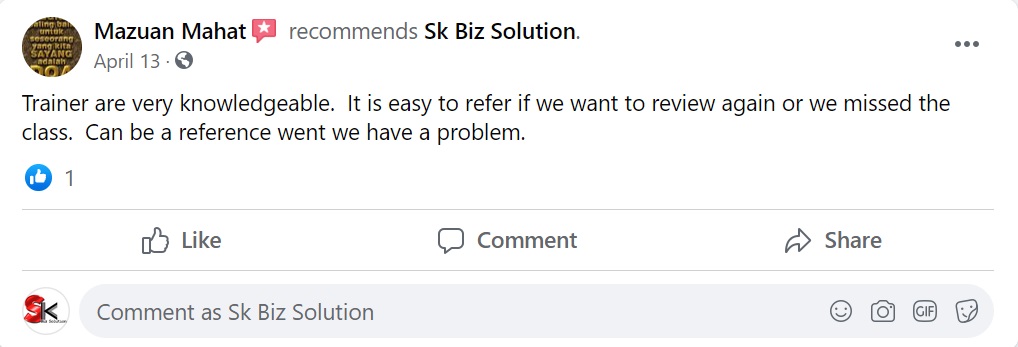 Price before RM4,000, Now RM3,500 Per Session , (Fee Inclusive of trainer, training material & E-certificate of attendance)